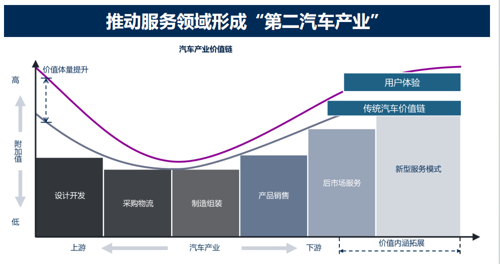 第三,服务业。过去我们更多关注汽车制造,当汽车离开工厂后就进入了使用环节。但服务环节存在很大的社会价值和商业前景,服务生态能否有效嵌入汽车全生命周期价值开发之中至关重要。